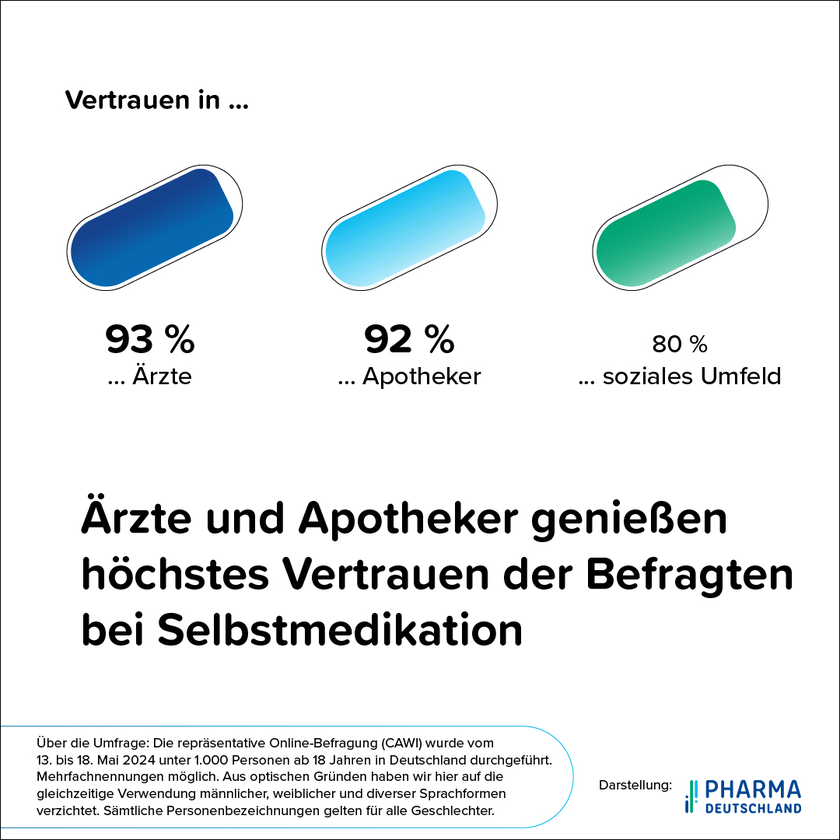 Die Umfrage zeigt auch, dass zwei Drittel der Befragten (67 %) rezeptfreie Arzneimittel in einer Apotheke vor Ort kaufen, während ein Fünftel (20 %) Versandapotheken nutzt. Besonders bei jungen Menschen ist das Vertrauen hoch: Bei den 18- bis 29-Jährigen kaufen mehr als drei von vier Personen (77 %) ihre rezeptfreien Arzneimittel in der Apotheke vor Ort. "Der direkte Patientenkontakt und das persönliche Gespräch sind entscheidend für das hohe Vertrauen", erklärt Brakmann. "Dies spiegelt sich auch in der wachsenden Akzeptanz von Impfangeboten in Apotheken wider. Wir sehen hier großes Potenzial, die Impfquoten in der