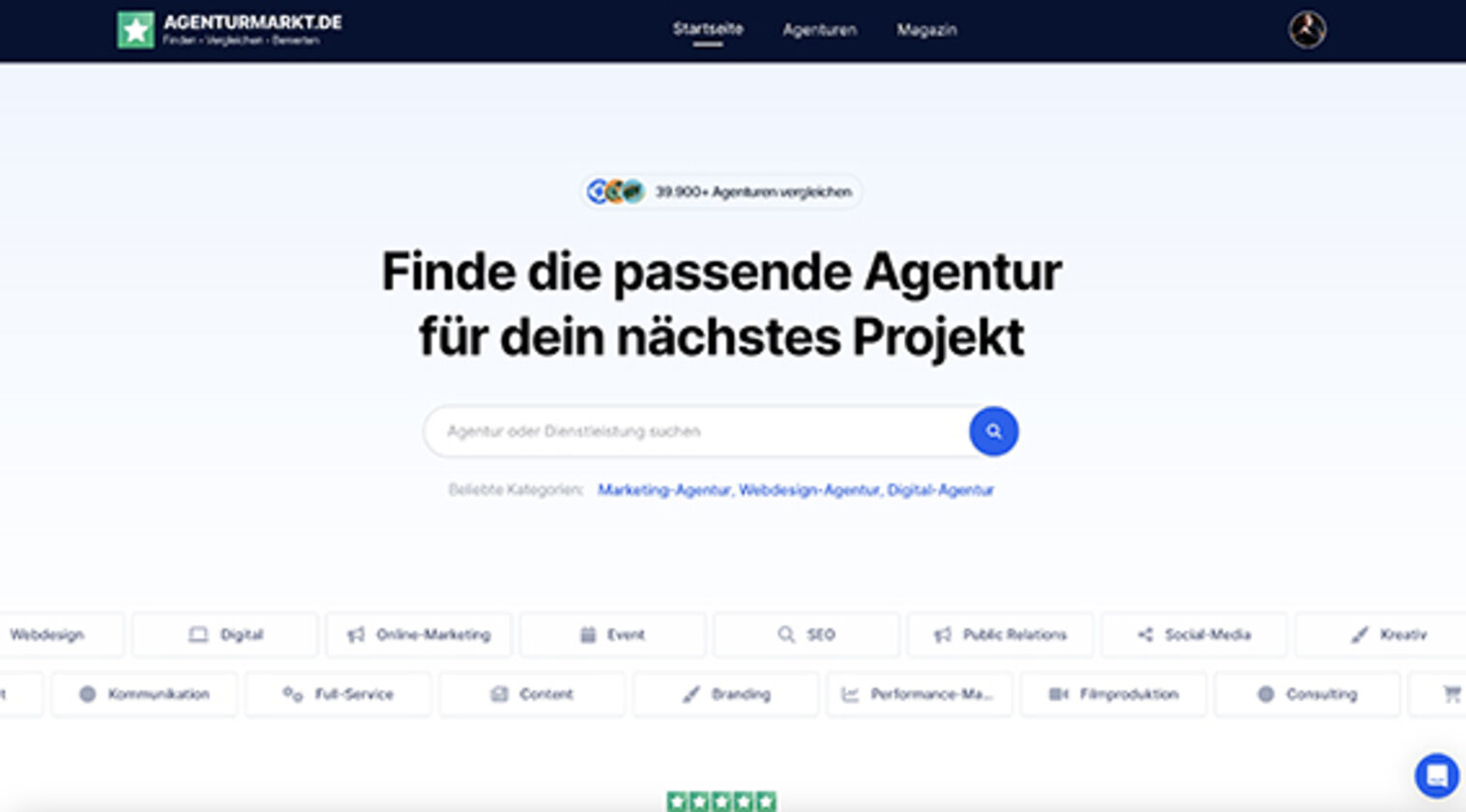 Unternehmen und Projektverantwortliche finden auf Agenturmarkt eine komfortable Such- und Vergleichsfunktion, mit der sich Agenturen nach Region, Leistungsbereich und Referenzen filtern lassen. Ein Bewertungssystem sowie veröffentlichte Fallstudien helfen dabei, passende Partner für Marketing-, Digital- oder Kommunikationsprojekte zu identifizieren.