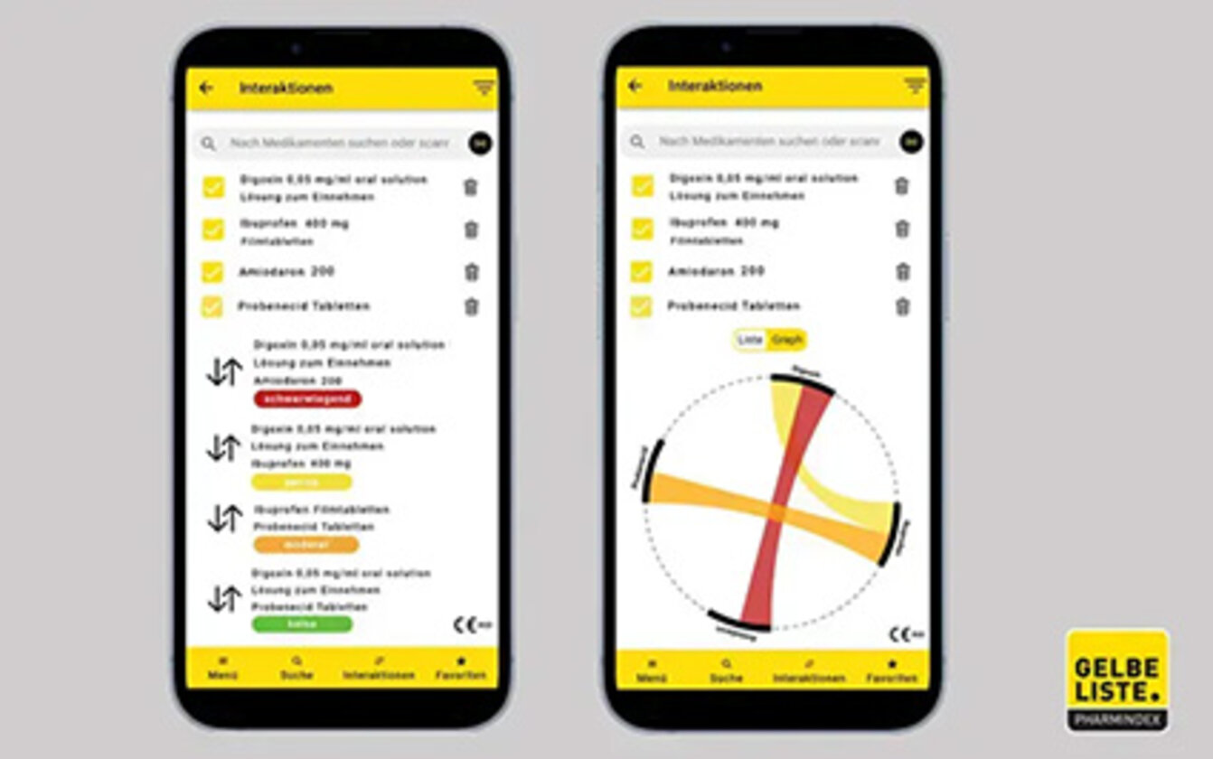 Die Arzneimittelüberprüfungen erfolgen durch das Scannen des Barcodes (PZN-Nummer) auf den Arzneimittelverpackungen. Die Anzeige der Wechselwirkungen erfolgt absteigend und farblich geordnet von rot (schwerwiegend) bis grün (keine). Zu jeder Interaktion erhalten Ärztinnen und Ärzte detaillierte Informationen inklusive Schaubilder zur Art der Wechselwirkung. Auch das Entfernen und Hinzufügen von Medikamenten ist möglich.