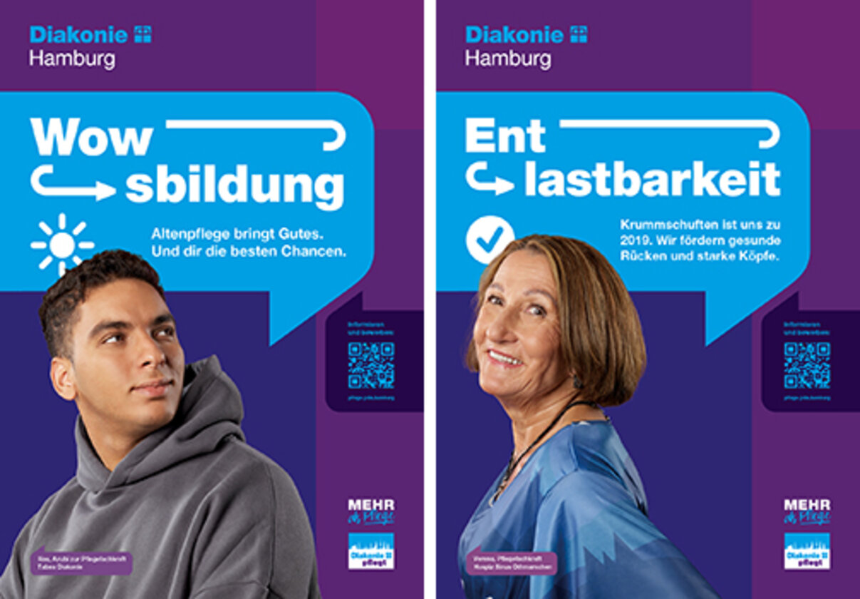 Die Kampagne setzt nicht nur ein starkes Zeichen für den Pflegeberuf, sondern positioniert die Diakonie Hamburg als attraktiven, modernen Arbeitgeber, der sich für Menschlichkeit und Diversität in der Pflege einsetzt. Kern der Kampagne sind eine Reihe aufmerksamkeitsstarker Out-of-Home-Motive mit Mitarbeiter:innen der Diakonie Hamburg, deren individuelle Geschichten und persönliche Motivation für ihren Beruf in persönlichen Videoporträts auf dem Instagram Account @mehralspflege erzählt wird.