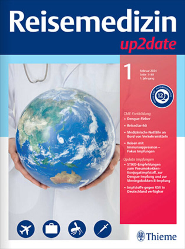 Reisemedizinische Fragestellungen gewinnen im Praxisalltag zunehmend an Bedeutung: Die Zahl der Fernreisen ist nach dem Corona-Einbruch rasch wieder auf Rekordniveau gestiegen, und mit dem Eintritt der „Babyboomer“ in den Ruhestand steigt auch die Zahl der Senioren und von Menschen mit Vorerkrankungen unter den Reisenden. Zudem sind Krankheitserreger mobil: „Die Klimaerwärmung sorgt dafür, dass ehemals tropische Krankheitserreger immer öfter in gemäßigte Breiten vordringen“, sagt Professor Dr. med. Tomas Jelinek. Er ist Schriftleiter der neuen Zeitschrift und wissenschaftlicher Leiter des CRM Centrum für Reisemedizin – der Thieme-Tochter, die für die Umsetzung der „Reisemedizin up2date“ verantwortlich zeichnet. So haben sich in Italien und Südfrankreich im vergangenen Jahr jeweils mehrere Dutzend Menschen mit dem Dengue-Fieber angesteckt. Die für die Übertragung verantwortliche asiatische Tigermücke Aedes albopictus ist mittlerweile auch in Süddeutschland heimisch geworden.