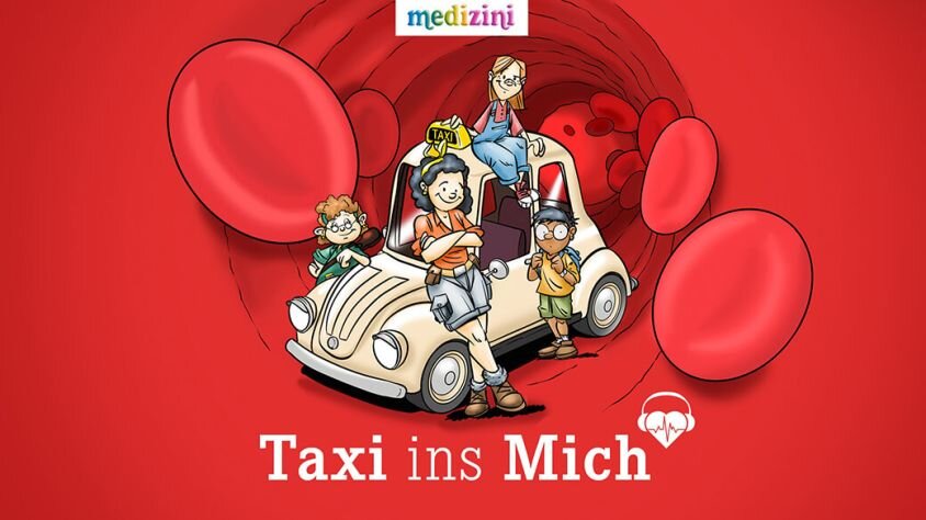 In Taxi ins Mich begleiten die jungen Zuhörer:innen die drei Kinder Tessa, Yassin und Ella auf ihrer abenteuerlichen Reise durch den Körper. Zusammen mit der Ärztin Toni erkunden sie in einem Nanotaxi Organe, und lernen, wie im Inneren alles funktioniert und zusammenspielt.