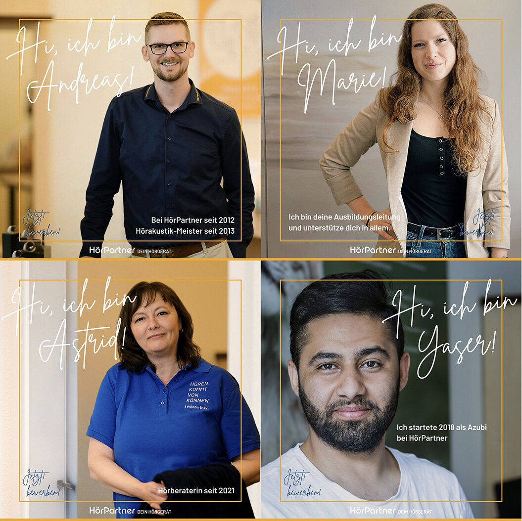 Erklärtes Ziel ist es, dass Kunden den Hörakustik-Anbieter nicht nur als professionell, sondern auch als nah und vertraut erleben. Mitarbeiterinnen und Mitarbeiter zeigen sich auf Facebook und Instagram offen, glaubhaft und ungeschminkt. Sie werben so für individuelles Handwerk und für den besonderen HörPartner-Spirit.