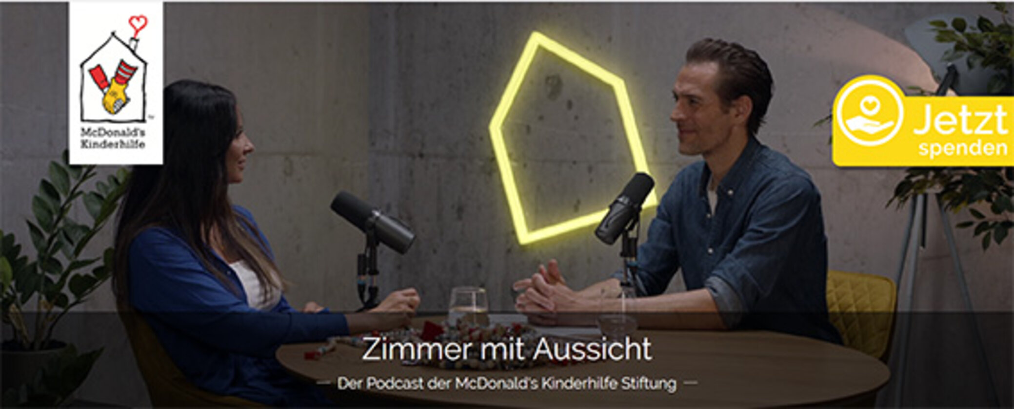 Die ersten Episoden des Podcasts „Zimmer mit Aussicht“ sind nun auf Spotify und auf allen gängigen Podcast-Plattformen online. Die Hörer:innen und Zuschauer:innen erwartet künftig immer zum Monatsende eine neue Episode. „Zimmer mit Aussicht“ erzählt von Hoffnung, Rückschlägen, kleinen Wundern – und von der Kraft, gemeinsam durch schwere Zeiten zu gehen. Es werden Familien zu Gast sein, die mit ihrer Geschichte anderen Familien, die gerade akut betroffen sind Mut machen, Ärzt:nnen und andere Expert:innen, haupt- und ehrenamtliche Mitarbeiter:innen und auch die prominenten Schirmherren der McDonald' Kinderhilfe Stiftung.