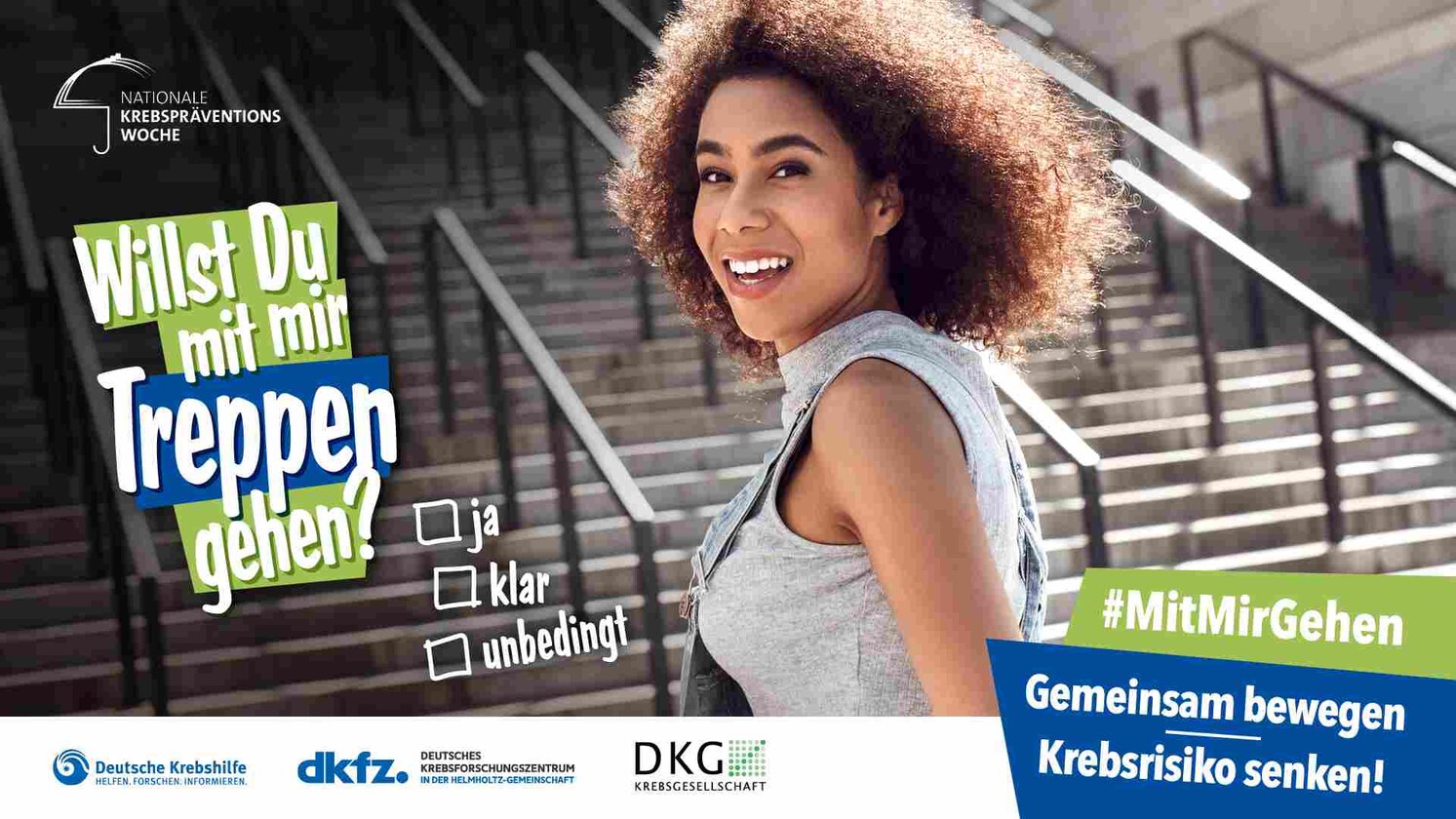 Anlässlich der Nationalen Krebspräventionswoche 2024 initiieren die drei Organisationen eine Social Media-Kampagne unter dem Motto "Willst du mit mir gehen?". Ziel ist es, dass sich Menschen gegenseitig zu gemeinsamer Bewegung motivieren und das gemeinsame Erlebnis unter dem Hashtag #MitMirGehen auf Instagram, Facebook, X oder LinkedIn teilen.