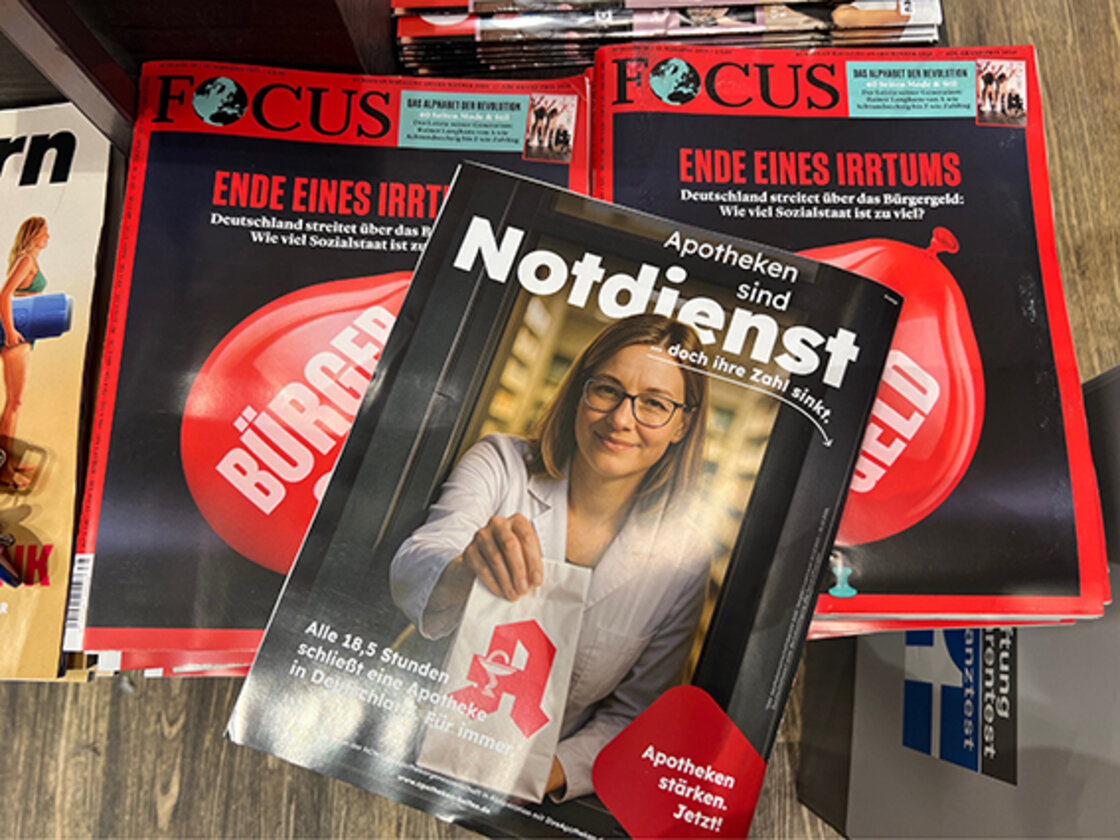 „Apotheken sind Nähe“, „Apotheken sind Akutversorgung“ und „Apotheken sind Notdienst“ lauten die Headlines, die die bildstarken Kampagnenmotive flankieren. Dabei informiert jedes Motiv darüber, dass mittlerweile alle 18,5 Stunden eine Apotheke in Deutschland von der Bildfläche verschwindet - endgültig.