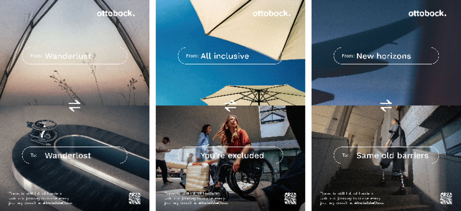 Während der Urlaubs- und Ferienzeit führt Ottobock, gemeinsam mit der Kreativagentur PRESENCE, die „Invisible Class“ ein. Allein in Berlin machen 84 Werbebildschirme von WallDecaux an Bahnhöfen und mehr als 4.000 stadtweit verteilte Poster auf die Kampagne aufmerksam. Motive mit Slogans wie „From: Wanderlust – To: Wanderlost“ oder „From: All inclusive – To: You’re excluded” und einem QR-Code laden dazu ein, mehr über die Invisible Class zu erfahren.