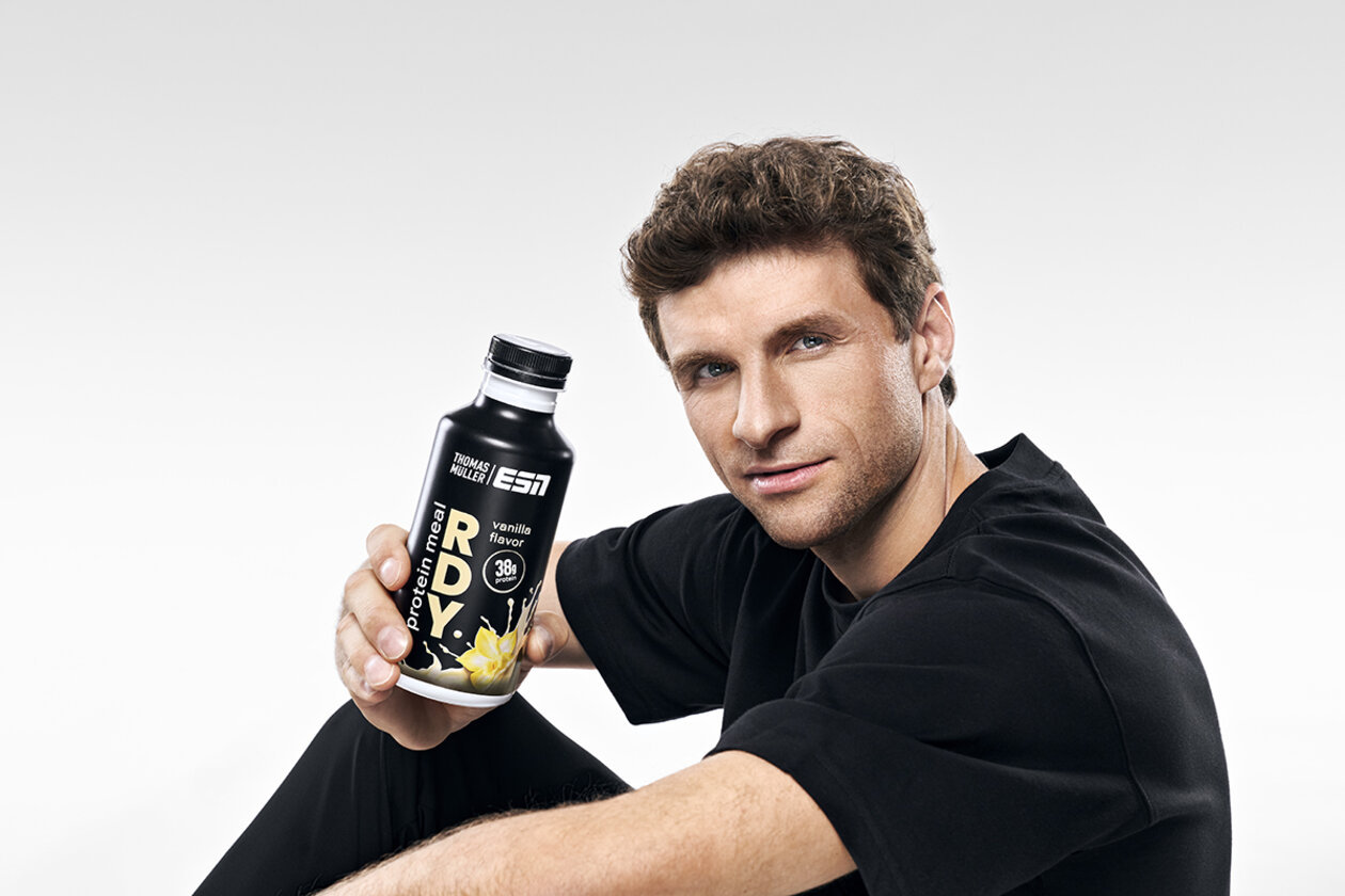 ESN ist deutscher Marktführer für Sporternährung und hat gemeinsam mit Fußball-Weltmeister Thomas Müller die Produktneuheit RDY entwickelt: Als strategische Partner bringen sie zusammen die High-Protein-Trinkmahlzeit in vier Geschmacksrichtungen auf den Markt und geben damit den Auftakt für die neue Produktrange Thomas Müller | ESN.