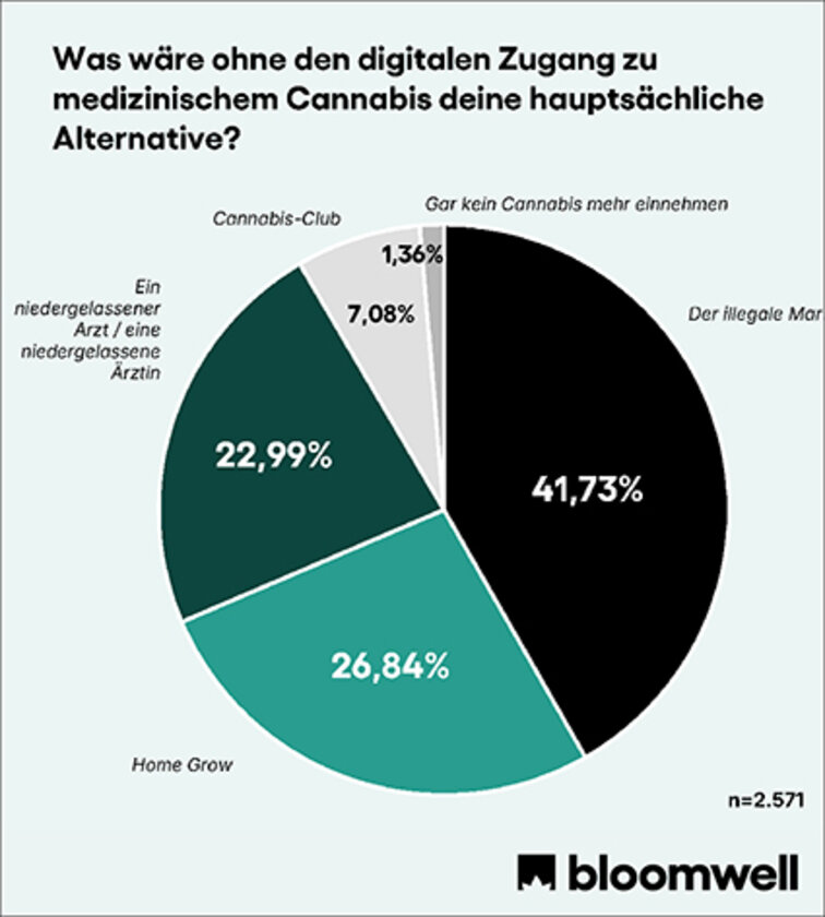 Ohne den digitalen Zugang zur Cannabis-Therapie würden 41,7 Prozent erneut in den illegalen Markt abwandern, 26,8 Prozent würden sich auf eigene Faust über Home-Grow therapieren. Knapp 23 Prozent geben an, in einem solchen Szenario über einen niedergelassenen Arzt eine Therapie starten zu wollen, wobei ein großes Fragezeichen dahinter steht, ob sie überhaupt entsprechende medizinische Expertise jenseits der spezialisierten Plattformen in Deutschland finden. Ein aktueller Report hat soeben erst die gesundheitlichen Risiken einer illegalen Versorgung aufgezeigt.